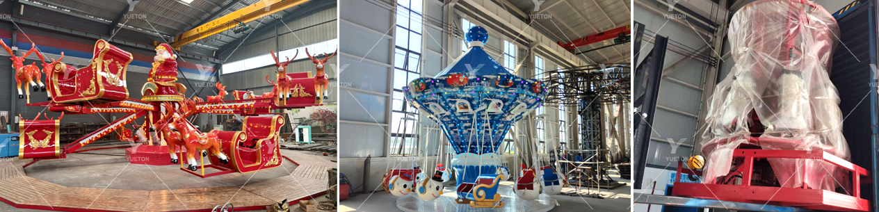 Many European customers are fond of Christmas themed rides and we have exported them to many countries like Spain, Portugal etc before and received good feedback. These rides are made of Christmas themed fiberglass models and they look very attractive and are painted very well. Except the Christmas self control ride and Christmas flying chair, we can also produce Christmas track train, Christmas mini ferris wheel and Christmas tree ride.